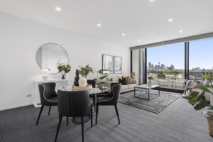 Commanding a privileged position on Level 11 & 12 of the prestigious Lumina building, this north-facing sub-penthouse presents an extraordinary lifestyle offering of privacy and sophistication. With sweeping, uninterrupted views of the Sydney skyline and vistas to the Moore Park Golf Course, this exclusive home sets a benchmark for contemporary living in Waterloo.