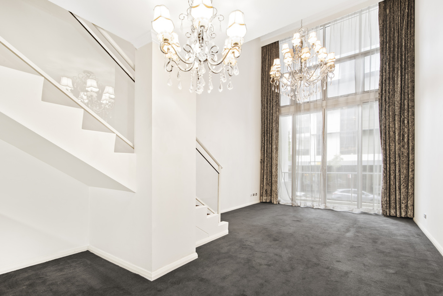 – Spacious living area with floor-to-ceiling glass